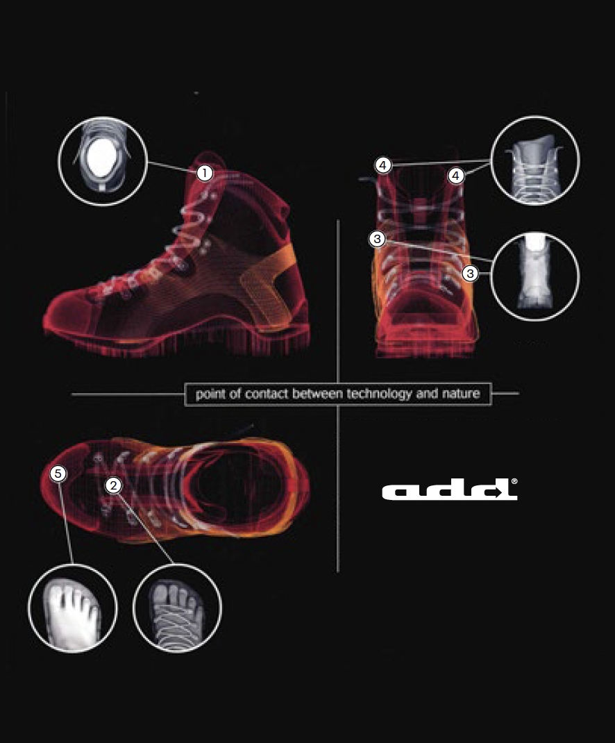 Estructura del upper: sujeción del tobillo (en botas de caña media o alta) y refuerzos laterales.